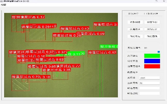 軟件采用深度學(xué)習(xí)方法對(duì)打印過(guò)程中每層的鋪粉質(zhì)量進(jìn)行實(shí)時(shí)監(jiān)控,可對(duì)鋪粉質(zhì)量進(jìn)行“鋪粉不足”、“刮刀條紋”、“打印層過(guò)高”等缺陷進(jìn)行實(shí)時(shí)檢測(cè)與判定并進(jìn)行報(bào)警處理。