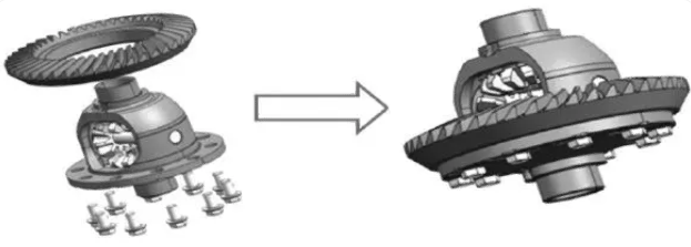 差速器廣泛使用于乘用車及商用車,是汽車減速器總成里面的一個重要組成部分,它提供動力傳動,保障汽車轉(zhuǎn)彎安全差速。傳統(tǒng)差速器殼體和主減速齒輪通過螺栓連接,這種傳統(tǒng)連接方式加工工序多,質(zhì)量較大,成本較高,不符合汽車工業(yè)的發(fā)展趨勢。
