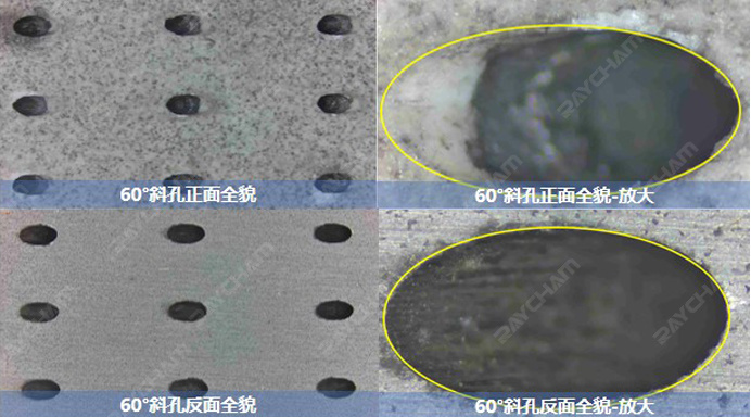 60°斜孔-無涂層鎳基高溫合金加工結(jié)果觀察