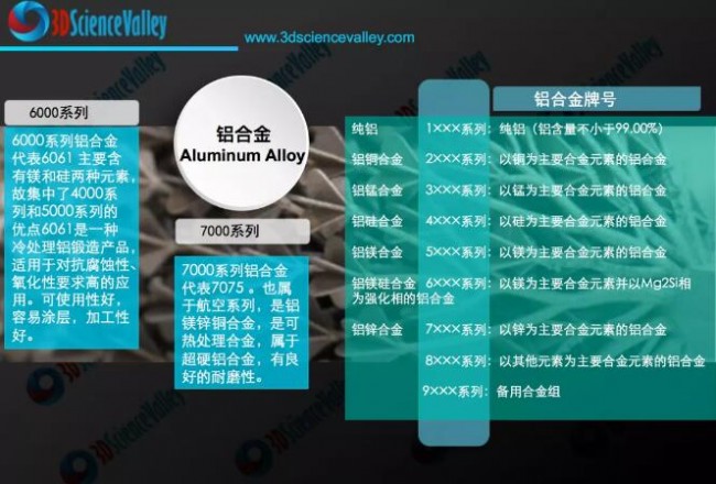 雖然比鈦合金更弱,但鋁合金具有良好的強(qiáng)度重量比,是一種常見(jiàn)的(和成熟的)航空航天材料選擇。根據(jù)3D科學(xué)谷的了解,增材制造零件生產(chǎn)中使用的鋁合金包括基于合金元素的 1xxx、2xxx、4xxx、6xxx、7xxx 系列,其中許多是使用固態(tài)增材制造工藝制造的,可用于 AFS-D 和 UAM 工藝來(lái)加工。
